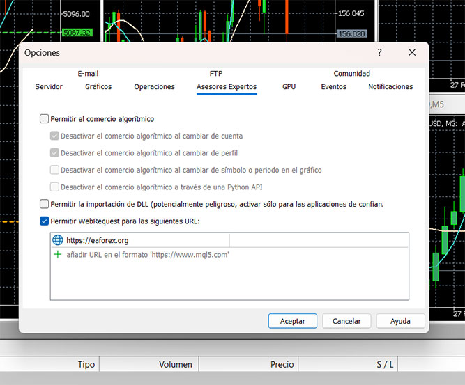 Coloca el programa EAforex a los gráficos.